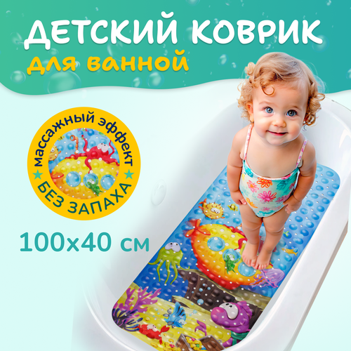 Детский коврик для ванной, "Подводная лодка" противоскользящий, на присосках 100х40см