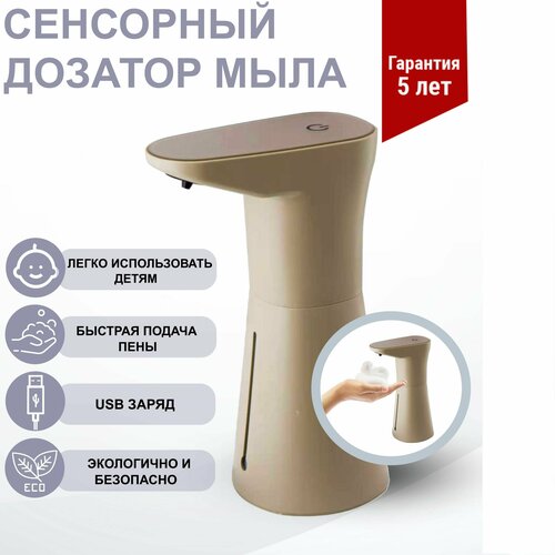 A410 Диспенсер пластиковый электронный для пены/жидкого мыла с USB подзарядкой, чёрный, красный, синий, белый, серый, коричневый До...