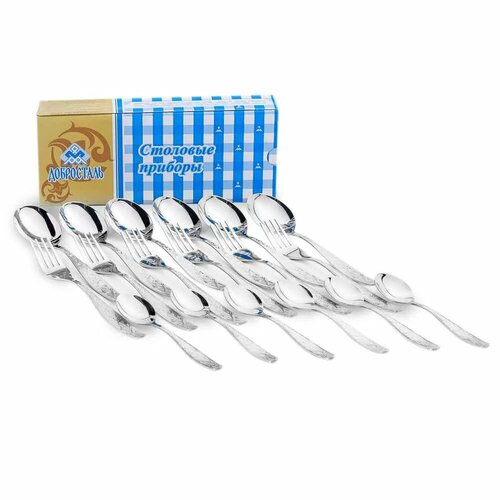 Добросталь (Нытва) Набор столовых приборов Уралочка, 18 предметов серебристый 6 18 посеребрение 14 см серебристый, серый