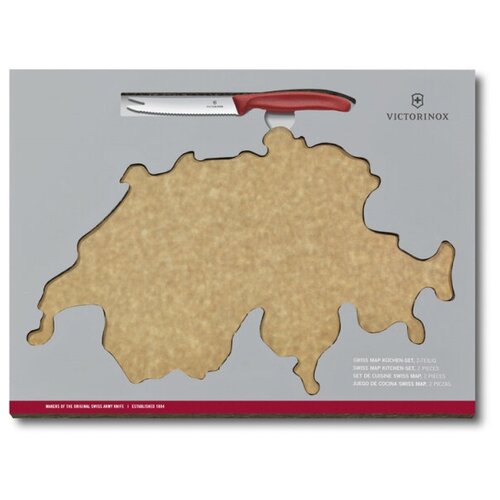 Набор VICTORINOX Swiss Map: нож для сыра и колбасы Swiss Classic 11 см + разделочная доска в форме карты Швейцарии Epicurean (6.7191. CH)
