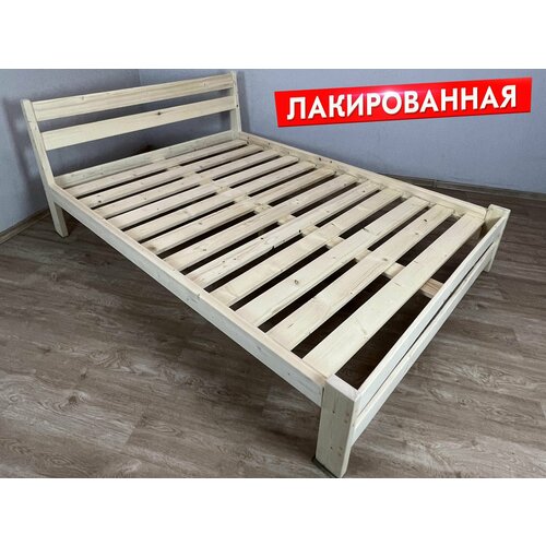 Кровать двуспальная Мишка усиленная из массива сосны с реечным основанием, 200х140 см (габариты 210х150), лакированная