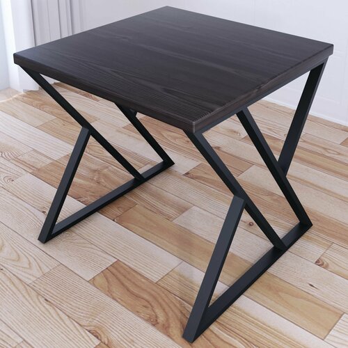 Стол кухонный Loft с квадратной столешницей цвета венге из массива сосны 40 мм и черными металлическими Z-образными ножками, 70x70х75 см