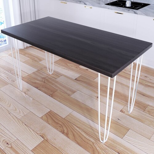 Стол кухонный Loft со столешницей цвета венге из массива сосны 40 мм и белыми металлическими ножками-шпильками, 140х80х75 см