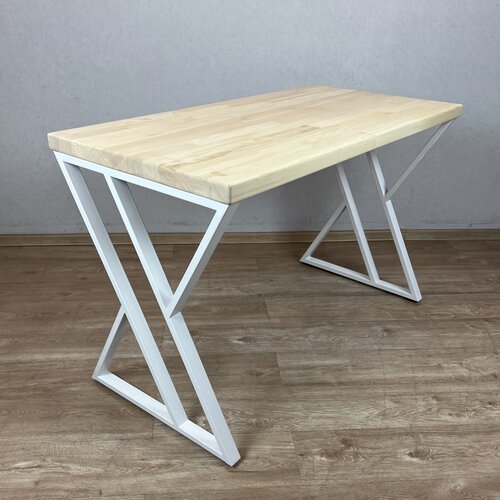 Стол кухонный Loft со столешницей из массива сосны 40 мм без покрытия и белыми металлическими Z-образными ножками, 140х80х75 см