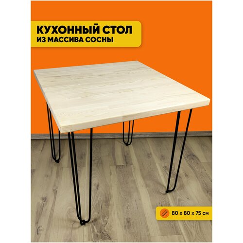 Стол Loft квадратный из массива сосны 40 мм на Шпильках 80x80х75 некрашеный офисный деревянная столешница стальные ножки письменный компьютерный