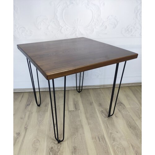 Стол кухонный Loft с квадратной столешницей цвета темного дуба из массива сосны 40 мм, на металлических ножках-шпильках, 70x70х75 см