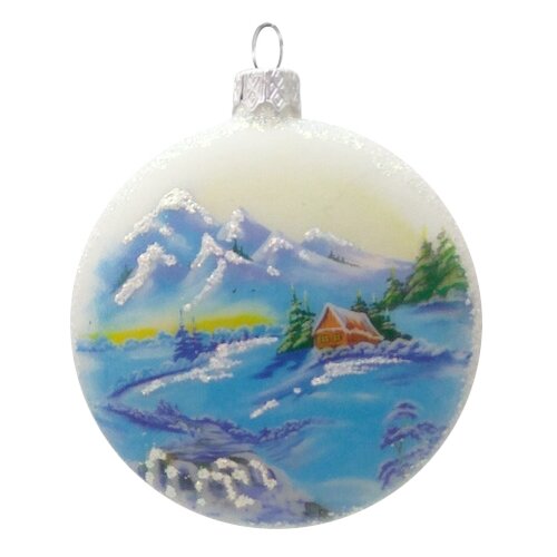 Елочная игрушка Ленигрушка медальон Домик лесника, белый глянец