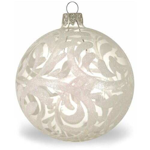 стеклоЕлочная игрушка шар елочный стеклянный. Диаметр 8 см. Выдут вручную. Рисунок нанесен механическим способом с ручным декорированием. Упакован в подарочную коробку - белая коробка с серебряным нанесением узора на четыре окна (допускается вариант - белая упаковка без тиснения). Материал: стекло. Комплектация: елочная игрушка, коробка подарочная (амортизационная), коробка защитная (гофра).