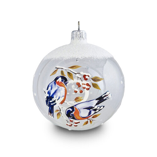 Елочный шар Ленигрушка Снегири на рябине, 10 см