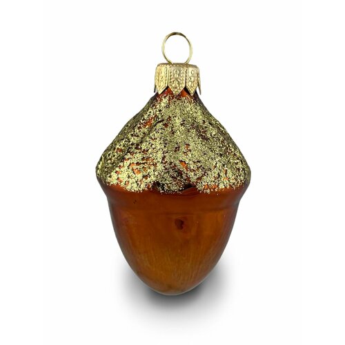 Елочная игрушка Ленигрушка Желудь, коричневый/золотистый, 9 см