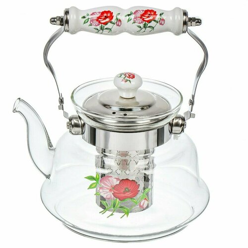 Чайник заварочный стекло, 1 л, с ситечком, Маки, Y4-6450