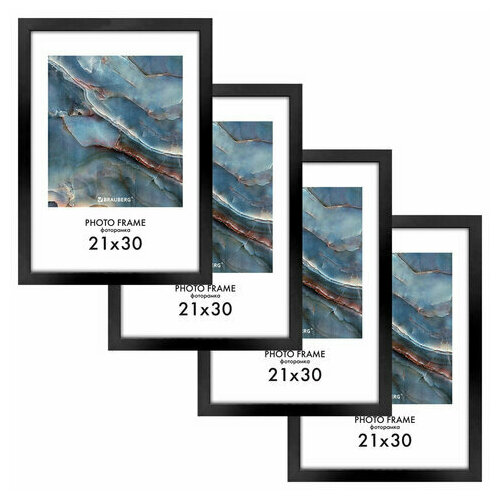 Рамка 21х30 см небьющаяся, комплект 4 шт, багет 16 мм МДФ, BRAUBERG "Basic", черная, 391259