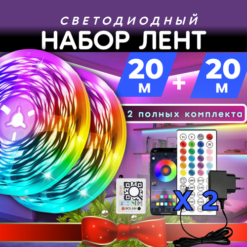 Набор светодиодных лент 20 + 20 метров RGB, с пультом управления и блоком питания