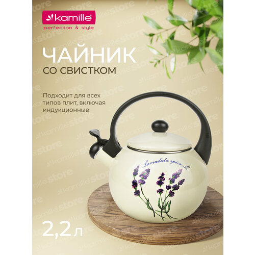 Чайник 2,2 л. эмалированный со свистком Kamille KM 1033 с черной бакелитовой ручкой (1033 /)