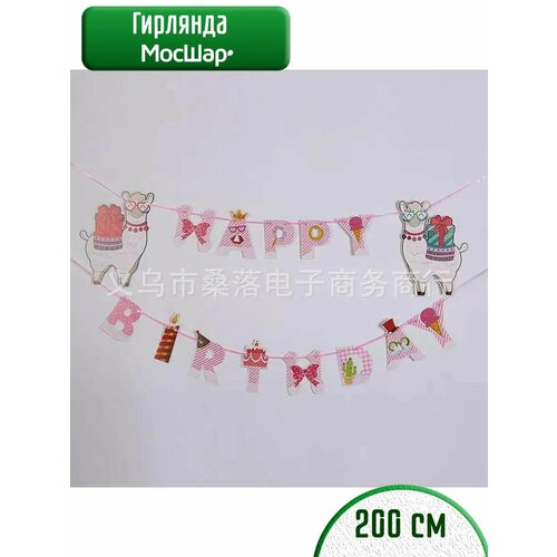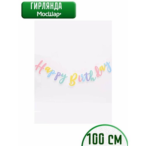 Гирлянда МосШар Happy Birthday, растяжка, 250 см, бумага, картон
