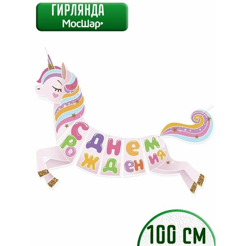 Гирлянда бумажная растяжка , Мосшар, на день рождения , Единорог, 100 см