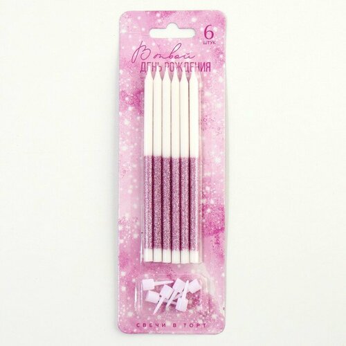 Свечи для торта «В твой день рождения», розовые, 6 шт, 13 х 0,5 см