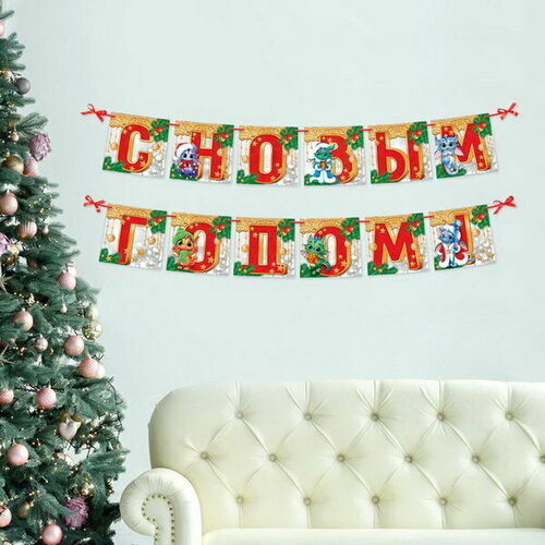 Гирлянда на ленте "С Новым Годом!", символ года 2024, дл. 200 см
