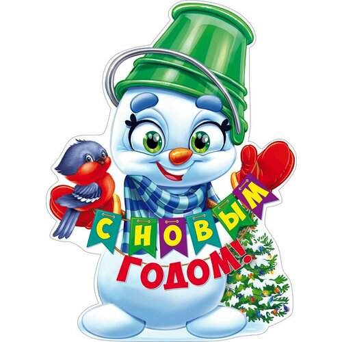 Открытая планета Плакат "С Новым годом!" Снеговичок, картон, 44х60 см.