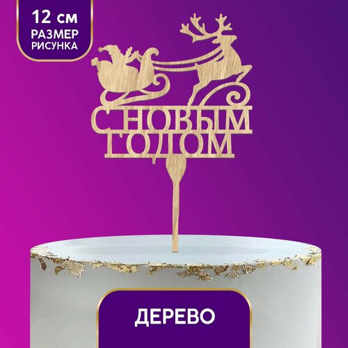Новогодний деревянный топпер для торта «С Новым годом», Дед Мороз с оленем, 120х112