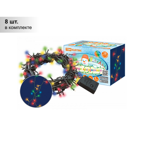 (8 шт.) Гирлянда Нить внутренняя IP20 10 м, 8 режимов, многоцветная, провод зеленый, 250В, TDM СГ100MЗ10, SQ0361-0041