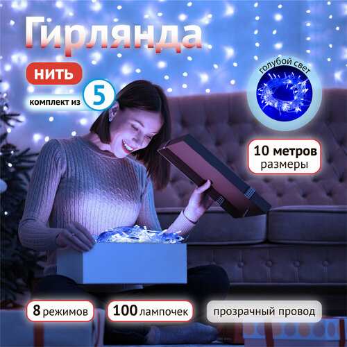 Гирлянда TDM Нить СГ100Г10 5W 220V 100Led 10м IP20 голубой (комплект из 5 шт)