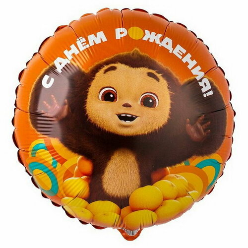 Шар фольгированный 18"С ДР! Чебурашка", круг