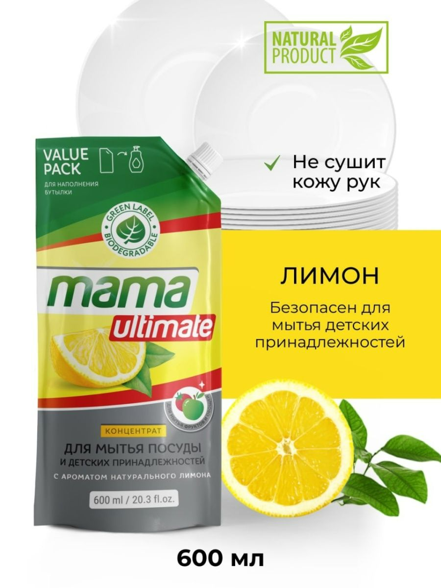 Средство гель для мытья посуды концентрат Mama Ultimate лимон 600 мл