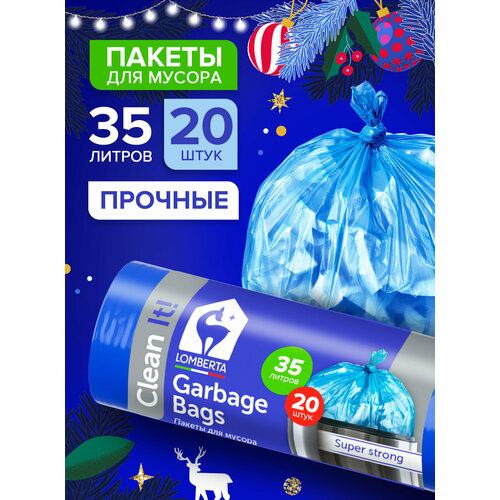 Пакеты для мусора Lomberta 35 л, мешки для мусора, прочное дно, 20 шт.