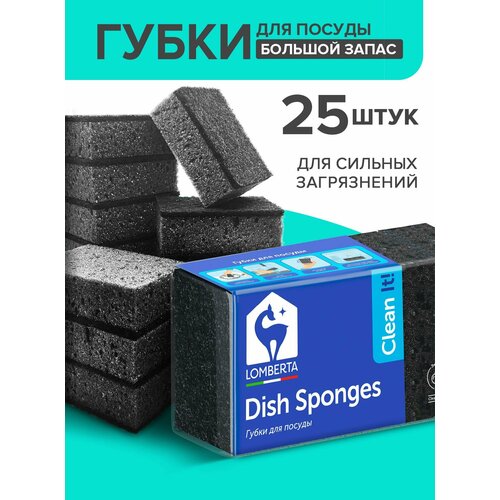 Губки для мытья посуды Lomberta многоразовые, черные набор 25 штук / хозяйственные, поролоновые, крупнопористые, универсальные для ванной и кухни