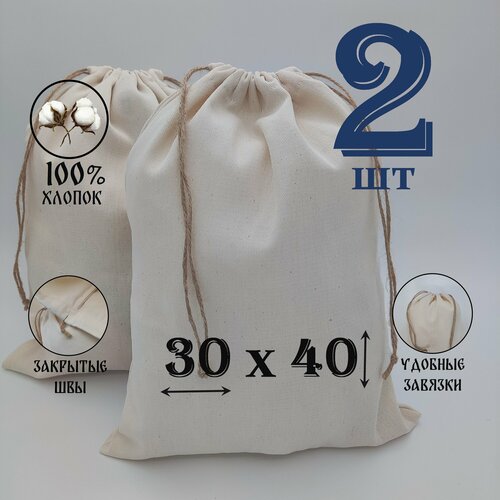 Хлопковый мешочек с джутовыми завязками 30 на 40 см./ 2 шт./ упаковка для подарков и хранения