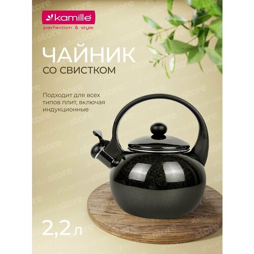 Чайник 2,2 л. эмалированный со свистком Kamille KM 1032 с черной бакелитовой ручкой (2,2 л. /)