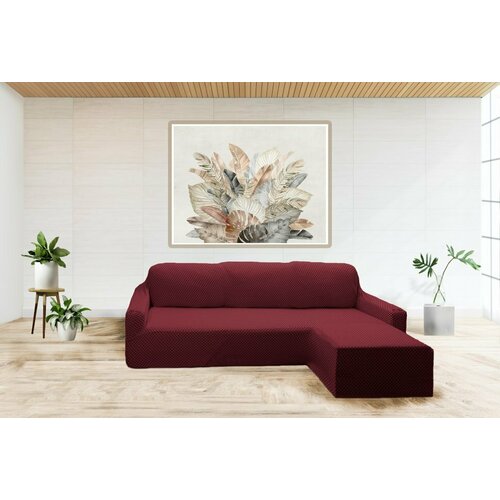 KARTEKS Чехол на угловой диван (левый угол) оттоманка Stella цвет: бордовый (240 см)