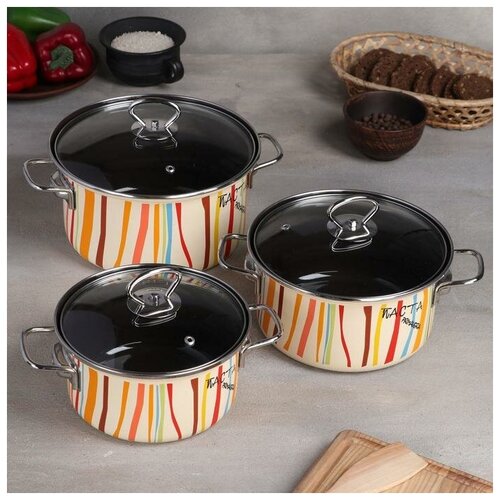 Набор кастрюль «Паста», 3 предмета: 1,9 л, 2,5 л, 3,7 л, стеклянные крышки