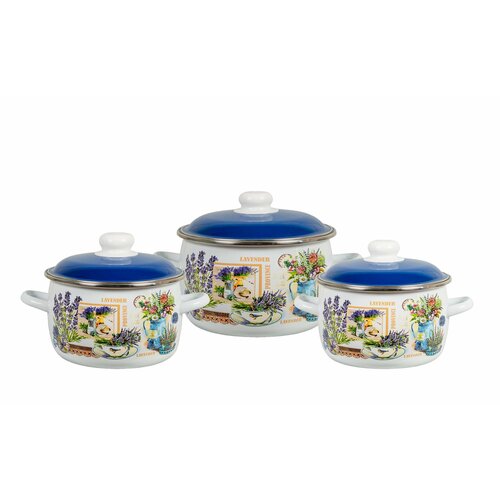Набор посуды эмаль 3ПР №02 горная лаванда белосн 6КА021М (2л, 3л, 4л) череповец