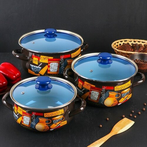 Набор посуды эмаль 3ПР РИО-5-1 люкс ЦИЛ (2,4л,3,4л,5л) КМЗ
