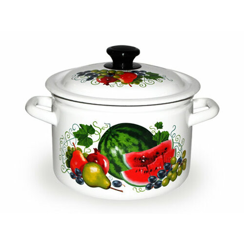 Кастрюля эмалированная сталь, 3 л, с крышкой, крышка стекло, с декором, сферическая, Керченский металлургический завод, Мохито, 61915-123/4