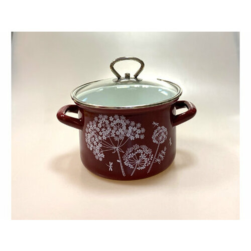 Кастрюля эмалированная сталь, 3 л, с крышкой, крышка стекло, с декором, сферическая, Керченский металлургический завод, Италика, 61904-122/4.02-У4