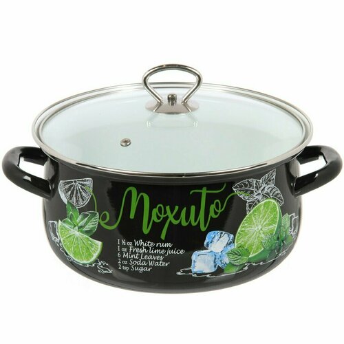 Цены на Кастрюля эмалированная сталь, 3 л, с крышкой, крышка стекло, с декором, сферическая, Керченский металлургический завод, Мохито, 61915-123/4 черный в г. Екатеринбург