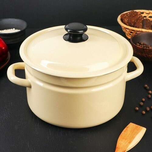 Керченская эмаль Кастрюля цилиндрическая, 5 л, индукция, без деколи, цвет слоновая кость