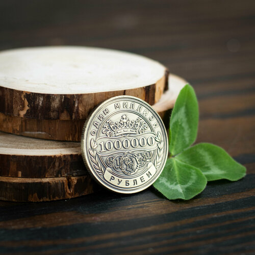Монета сувенирная подарочная "1 миллион рублей" / 1000000 руб / 1млн. руб (Золото) в пластиковом прозрачном футляре (d 4,1см, вес 25г)
