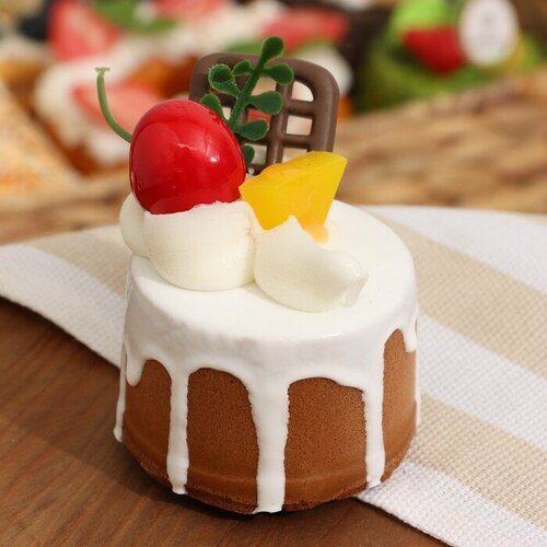 Муляж - магнит Пирожное Молли с фруктами, 6х6х7см
