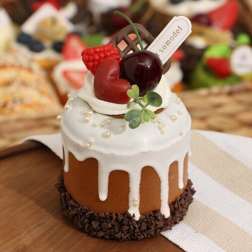 Муляж - магнит Пирожное ягоды в шоколаде 7х7х9см