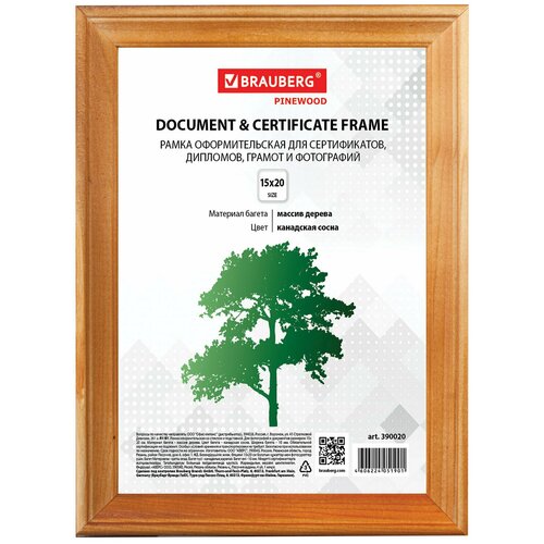 Рамка 15х20 см, дерево, багет 18 мм, BRAUBERG "HIT", канадская сосна, стекло, подставка, 390020