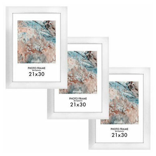 Рамка 21х30 см небьющаяся, комплект 3 шт, багет 29 мм, МДФ, BRAUBERG "Basic", белая, 391260