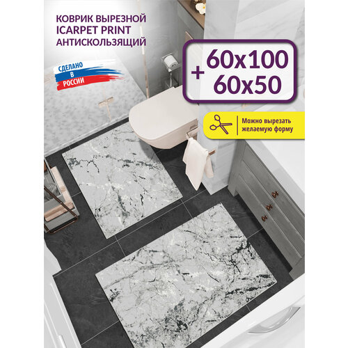 Набор ковриков для ванной и туалета вырезных антискользящих Icarpet PRINT 60х100 + 60х50 Итальянский мрамор серый 138