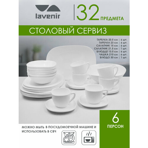 Столовый сервиз с кружками на 6 персон из стеклокерамики, 32 предмета