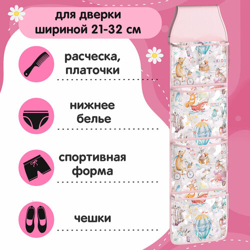 Кармашек подвесной в детский сад, 5 прозрачных отделений, 80*20 см, розовый, путешастики