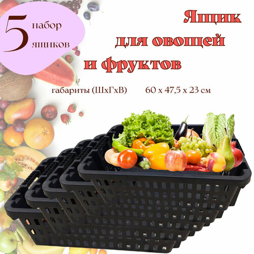 Универсальный пластиковый ящик для овощей, фруктов, корнеплодов, инструментов и инвентаря. Набор из 5 штук