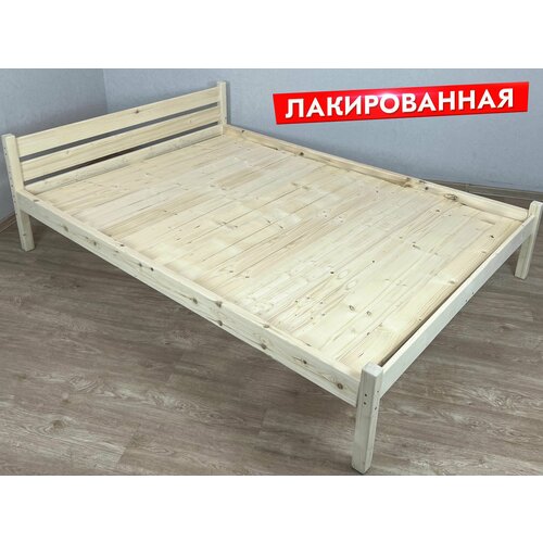 Кровать полутороспальная Классика из массива сосны со сплошным основанием, 200х120 см (габариты 210х130), лакированная